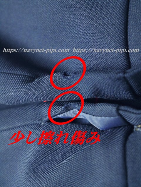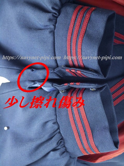 3年間の使用制服なので自然な使用感傷みは若干あります。全体的に綺麗な状態ですが両袖口の上にちょっぴり擦り切れ傷みがある状態です。 |