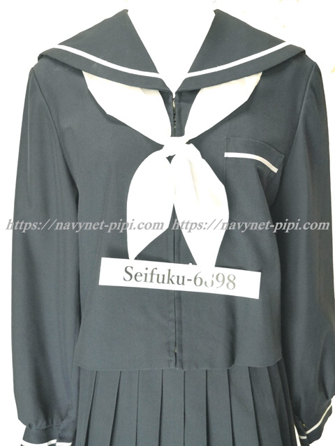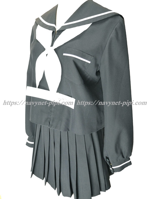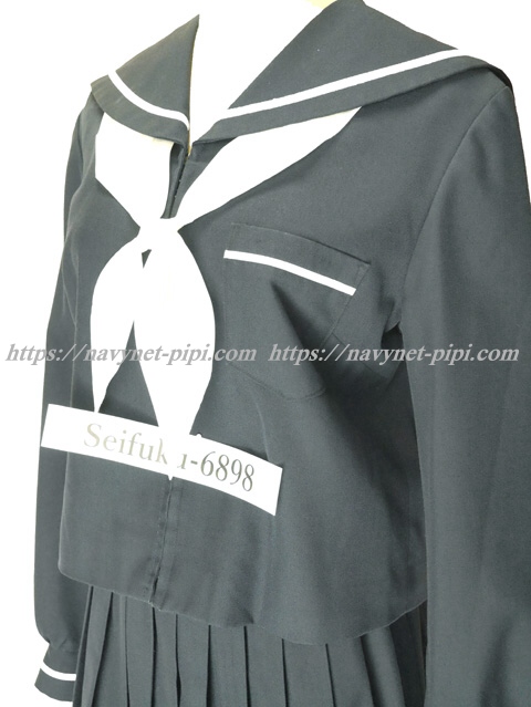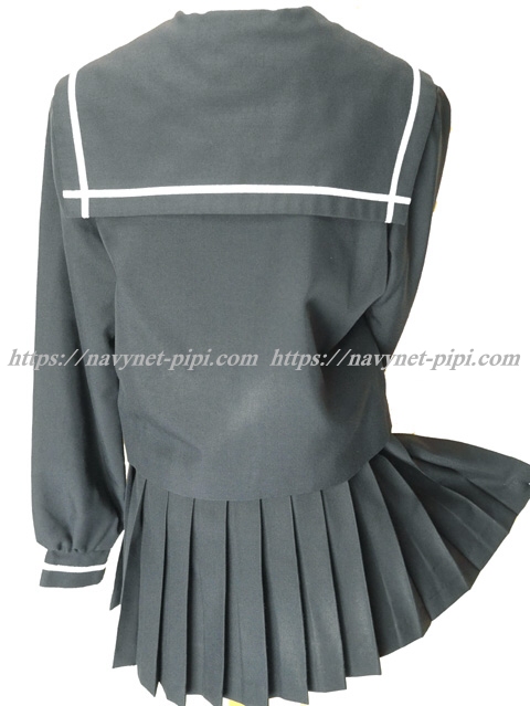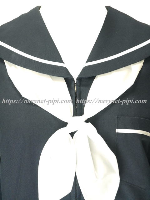 上着は濃紺でセーラー襟と胸ポケットと両袖口に白線1本♪