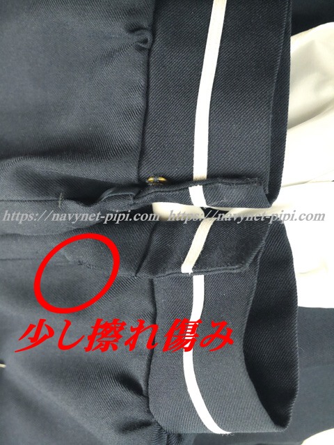 3年間の使用済み制服なので自然な使用感の傷みはあります。丁寧に大切に着ていた様子で特に目立った傷みもシミ汚れもありません。でも厳しく言っちゃうと右袖口の上に少し使用感の擦り切れ傷みと前ファスナーの所に縫い修復跡がある状態ですが全体的には綺麗な状態です♪ |
