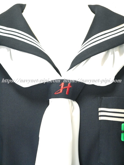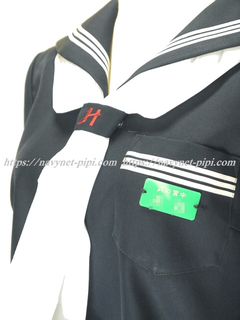 | 詳細/特徴 冬服(上着) (指定スカーフ・プラ名札付) ☆人気制服☆ プラ名札付き 濃紺でセーラー襟と胸ポケットと両袖口に白線3本☆ スカーフ留めに赤で校章刺繍入り♪ ネーム刺繍入り・左脇下ファスナー♪ |