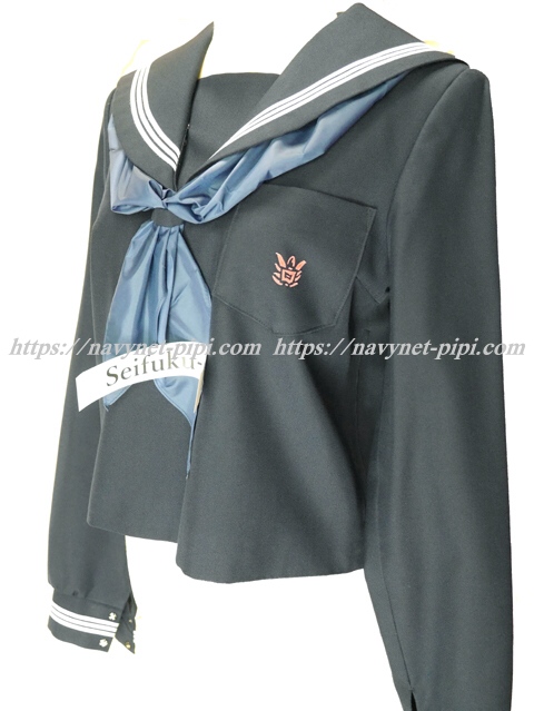 | 詳細/特徴 冬服 (上着・指定スカーフ) ☆濃紺セーラー☆ 【スカーフは新品で紺色の三角タイプで素材はナイロンのハネクトーンです】 濃紺タイプのセーラー服♪ セーラー襟と両袖口に白線3本入り・左脇下ファスナー☆ 左胸ポケットに赤で校章プリントが特徴的☆彡 スカーフ留め付き・胸当て付き♪ 上着の内側にネーム刺繍入り☆ |