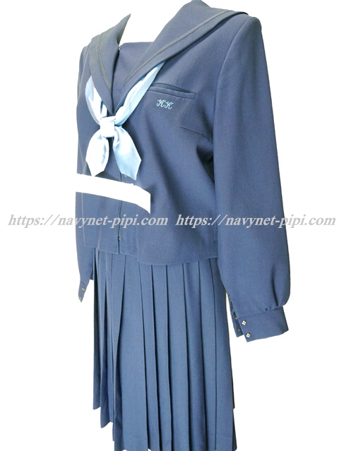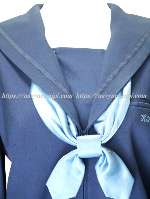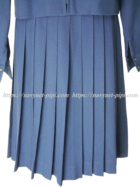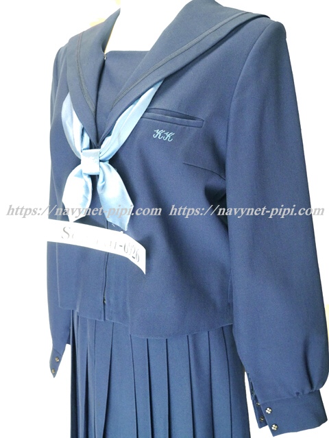 | 詳細/特徴 冬服3点セット (上着・スカート・専用シルク風リボン) ☆現行制服☆ 生地の色は青紺って感じの色です♪ セーラー襟のラインは紺色の1本太ラインです☆ 前開きファスナー・胸当て付き☆ 胸ポケットに北高校の校章の刺繍入り☆ 青紺の28本車ヒダプリーツスカート☆ 左ファスナー&ポケット☆ ウエスト調整はアジャスタータイプです♪ |