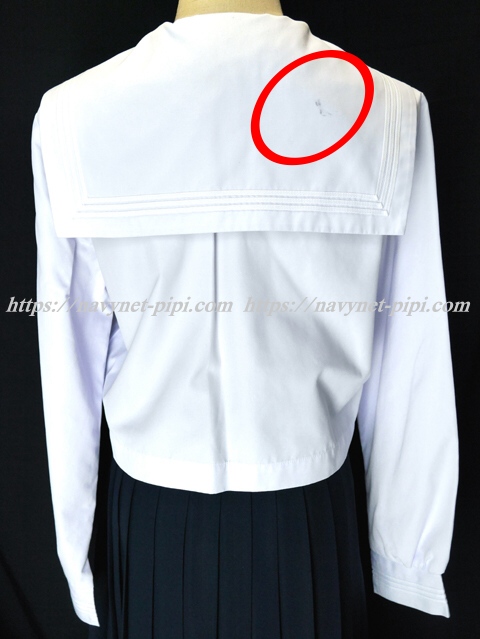 | 品質と状態 3年間の使用済み制服なので自然な使用感の傷みは若干あります☆丁寧に大切に着ていた様子なのですがお写真のように後ろ襟にシミ汚れとスカートの左サイド下に1ミリ丸程度の生地傷みがあります☆ |
