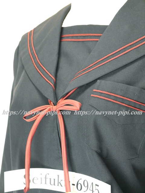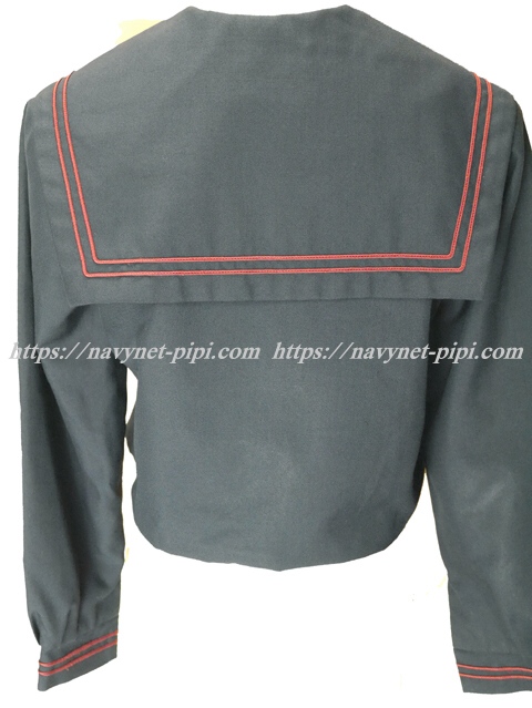 セーラー襟と胸ポケットと胸当てと両袖口にエンジの2本線♪