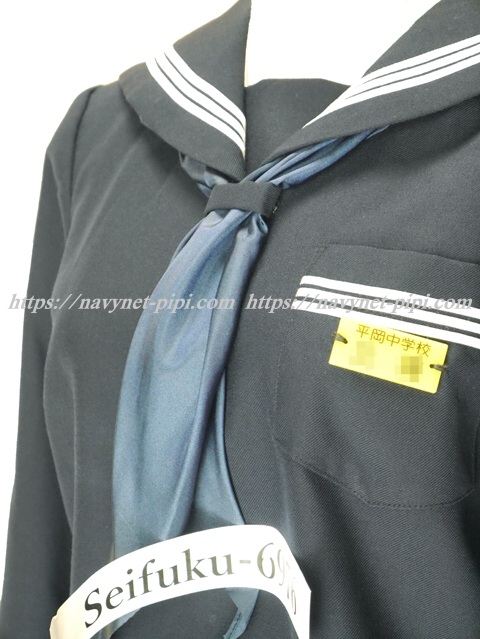 | 詳細/特徴 冬服4点セット (上着・スカート・指定スカーフ・プラスチック名札) ☆校名入りプラスチック名札☆ 超ミニスカート丈 【スカーフはお古の三角スカーフで素材はナイロンのアミックです】 人気の濃紺タイプのセーラー服セット♪ セーラー襟に白線3本入り・胸ポケットに白線3本☆ スカーフ留め付き・取り外しが可能な胸当て付き♪ 左脇下ファスナー・内側にネーム刺繍入り☆ スカートは24本車ヒダ仕様のプリーツスカート♪ 左ポケット&ファスナー☆ ウエスト調整はアジャスタータイプ☆ ♪希少な校名入プラスチック名札付き♪ |