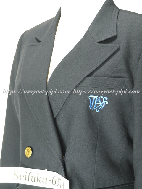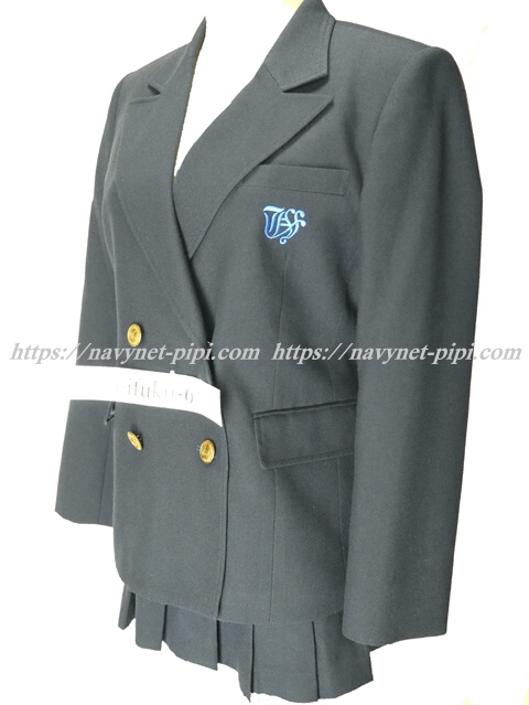 濃紺のブレザーは胸ポケットの校章刺繍がポイント♪