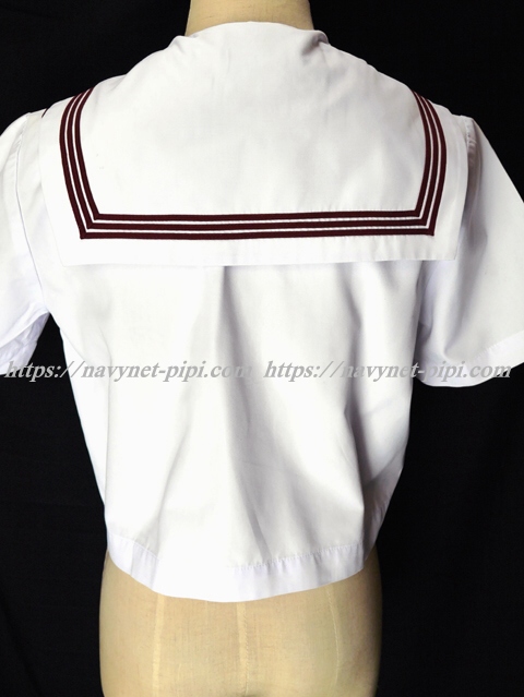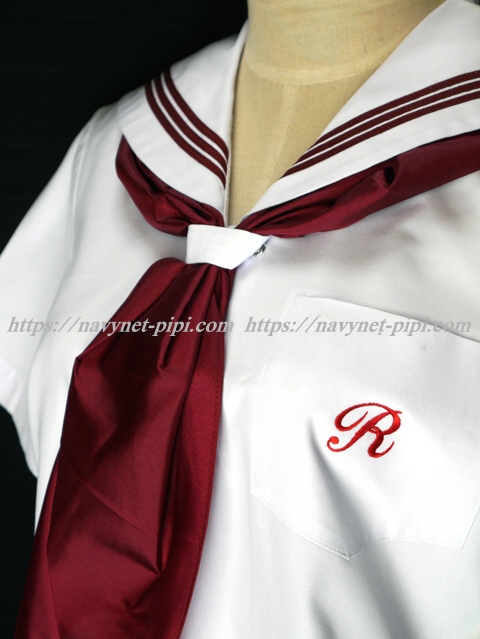 | 詳細/特徴 夏服(上着) ☆人気制服☆ スカーフ付き セーラー襟にエンジ色の3本ラインが印象的で可愛いです☆ 上着は左脇下ファスナー・スカーフ留め付き☆ 胸ポケットに校章刺繍入り♪ |