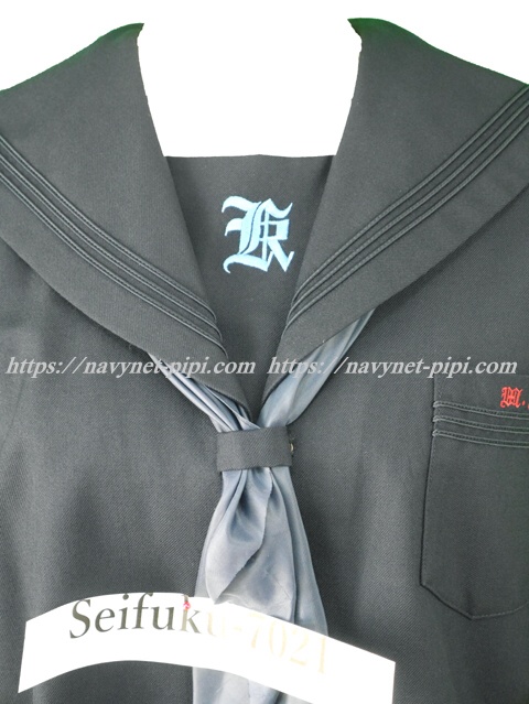 | 詳細/特徴 冬服 (上着・指定スカーフ) ☆大きいサイズ☆ とても綺麗 【スカーフはお古で紺色の帯タイプで素材はナイロンのハネクトーンです】 濃紺のセーラー服♪ 紺色3本ラインのセーラー服・左脇下ファスナー☆ 胸当てに校章刺繍・胸ポケットにも校章刺繍入り スカーフ留め付き☆ ☆上着の内側に校章マーク入り☆ |