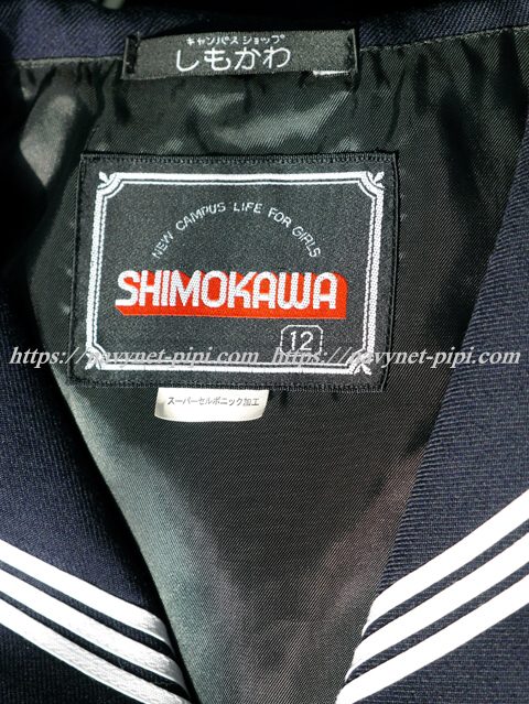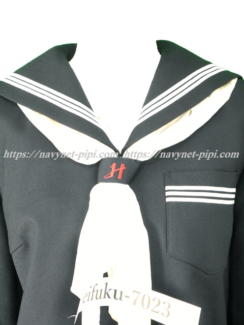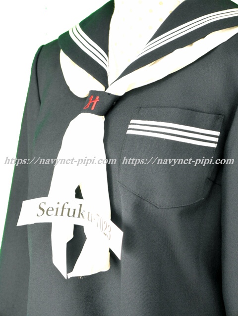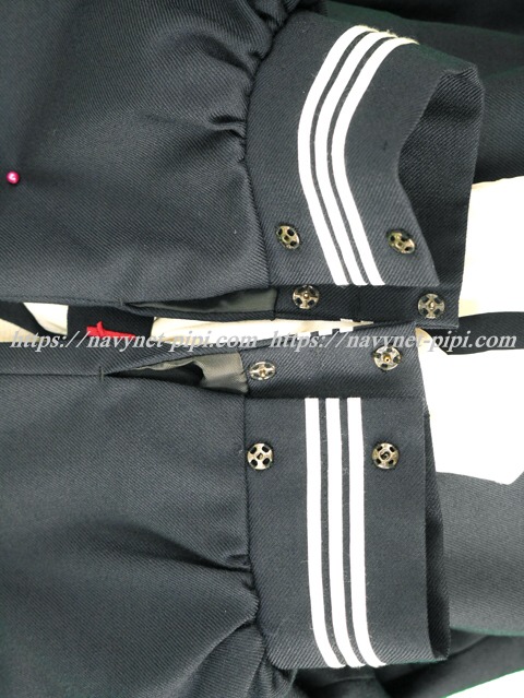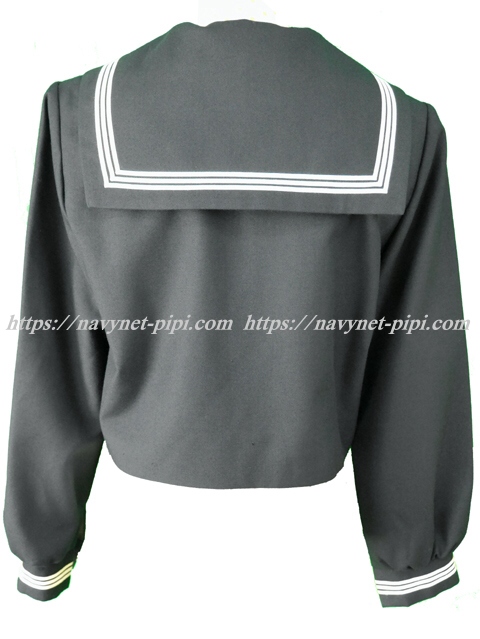 濃紺でセーラー襟と胸ポケットと両袖口に白線3本☆
