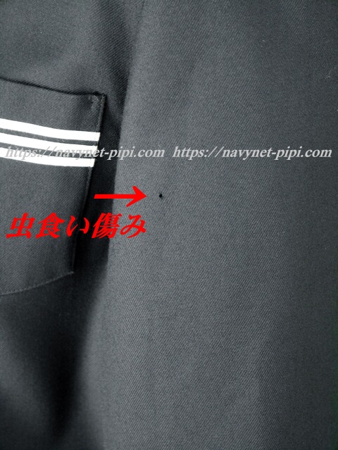3年間の使用済み制服なので自然な使用感の傷みは若干あります♪丁寧に大切に着ていた様子なのですが左袖の脇上と後ろ裾上にお写真のような虫食い傷みがある状況です☆