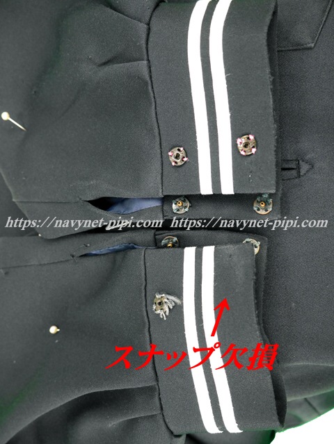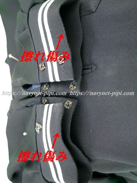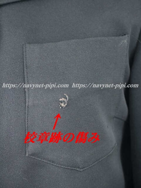 | 品質と状態 3年間の使用済み制服なので自然な使用感の傷みはあります☆お写真のように胸ポケットに校章穴、両袖口の白線解れ、右袖口のスナップ欠損、あとは背中辺りの生地がポリエステル素材なので少し毛玉感があります。 |