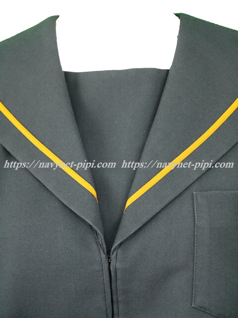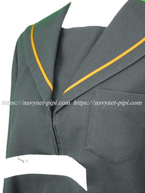 濃紺でセーラー襟と両袖口に茶色の1本ライン♪