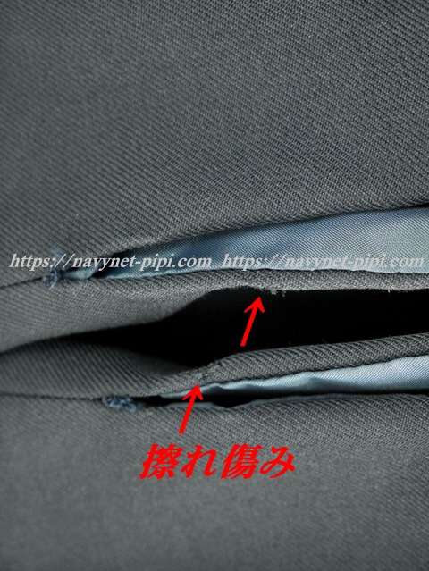 3年間の使用済み制服なので自然な使用感の傷みはあります。丁寧に大切に着ていた様子で特に目立った傷みもシミ汚れも無いのですが、厳しく言っちゃうと両袖口の上に少し擦れ傷みがある状態の品質です♪