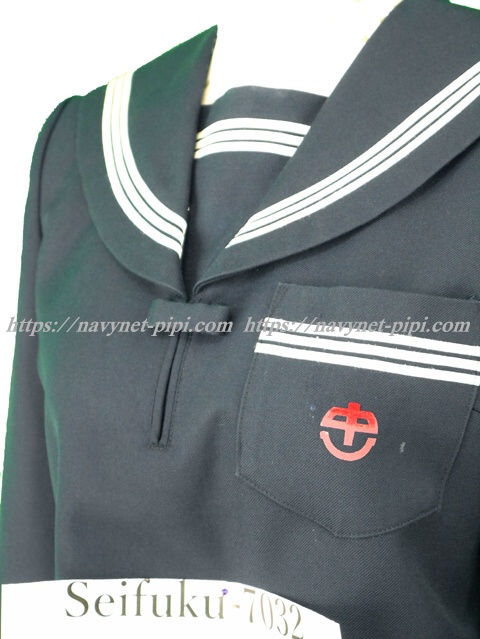 | 詳細/特徴 冬服(上着) ☆少し難あり品☆ 濃紺のセーラー服♪ 襟と胸当て、ポケットと両袖口に白線3本入り♪ 人気の胸当て付き・左脇下ファスナー☆ 胸ポケットに校章プリント・スカーフ留め付き♪ ☆ネーム刺繍入り☆ |