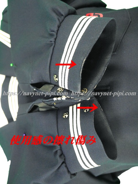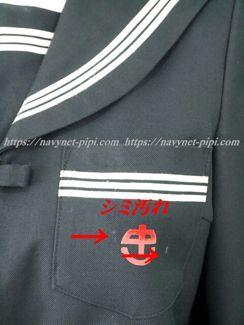 | 品質と状態 3年間の使用済み制服なので自然な使用感の傷みは若干あります♪丁寧に大切に着ていた様子ですが左襟元にシミ汚れと胸ポケットにシミ、両袖口に使用感の擦れ傷みと袖口の白線に黒ずみ汚れがあります☆ |