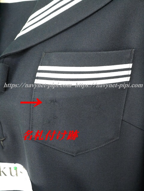 | 詳細/特徴 冬服(上着) ☆人気制服☆ 難あり品 人気の濃紺タイプのセーラー服♪ セーラー襟に白線3本入り・胸当てと胸ポケットに白線3本♪ スカーフ留めに校章刺繍入り☆ 左脇下ファスナー・ネーム刺繍入り☆ |