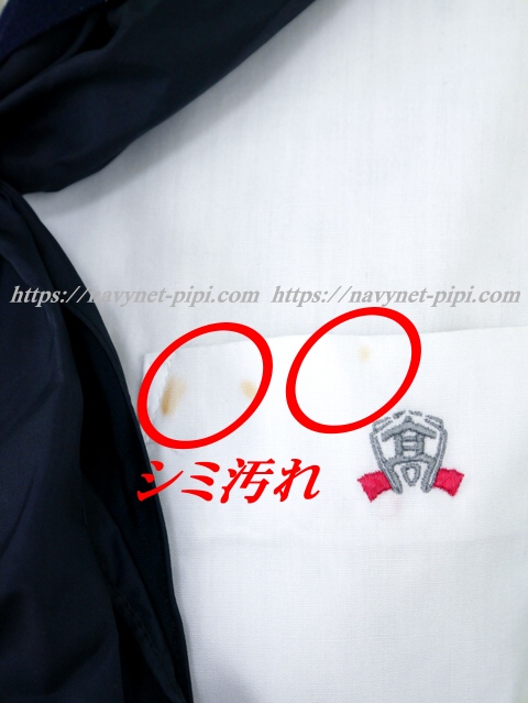 3年間の使用済み制服なので自然な使用感の傷みは若干あります。お写真のように胸ポケットのシミ汚れ、セーラー襟が使用感で若干の毛玉感がある状態です☆