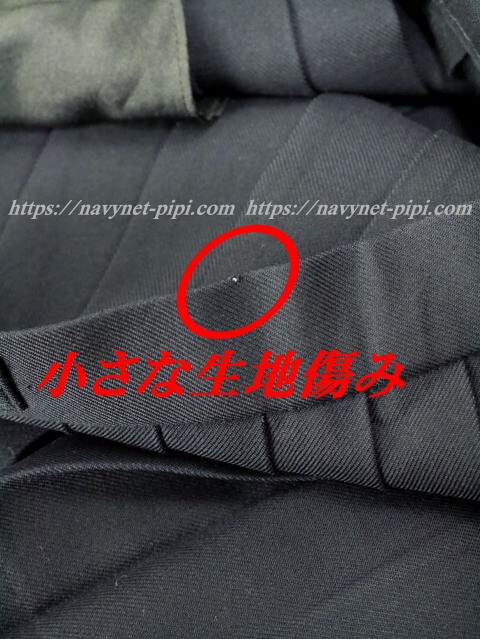3年間の使用済み制服なので自然な使用感の傷みは若干あります☆丁寧に着ていた様子で特に目立った傷みは無いのですが厳しく言っちゃうとウエストベルトの1箇所に小さな生地傷みがあります。