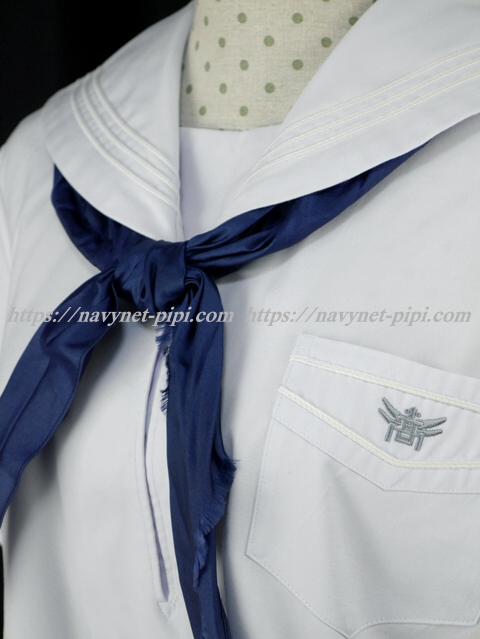 | 詳細/特徴 夏服(上着・指定スカーフ) ☆大きいサイズ☆ 【スカーフはお古の三角タイプです】 夏服セーラーセット♪ セーラー襟と胸ポケットに白線3本入り☆ 胸ポケットに校章刺繍・左脇下ファスナー☆ 小さな胸当てが可愛いです。 |