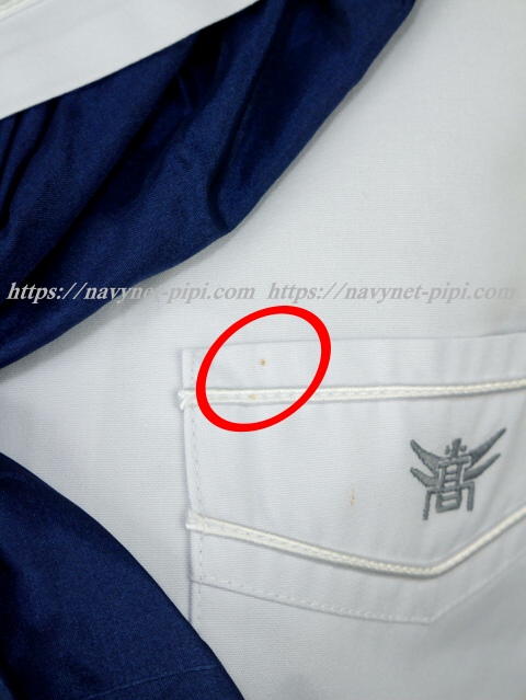 | 品質と状態 3年間の使用済み制服なので自然な使用感の傷みはあります。丁寧に大切に着ていた様子ですがお写真のように胸ポケット、両袖口の上部分と肘当たりに3箇所のシミ、首回りに若干の黄ばみがあるかなぁ?って状況です☆またスカーフも使用済み品なので若干の傷みがあります。 |
