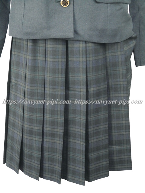 スカートはグリーン系のチェック柄で16本車ヒダプリーツスカート♪