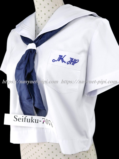 | 詳細/特徴 夏服(上着・指定スカーフ・布学年章) ☆半袖セーラー☆ 【スカーフはお古の三角スカーフで素材はナイロン100%ハネクトーンです】 最近は少なくなってしまったセーラー服です♪ セーラー襟に白線3本入り☆ 胸ポケットの青い校章刺繍がポイント♪ 上着は左脇下ファスナー☆ スカーフ留めに布学年章付き♪ |
