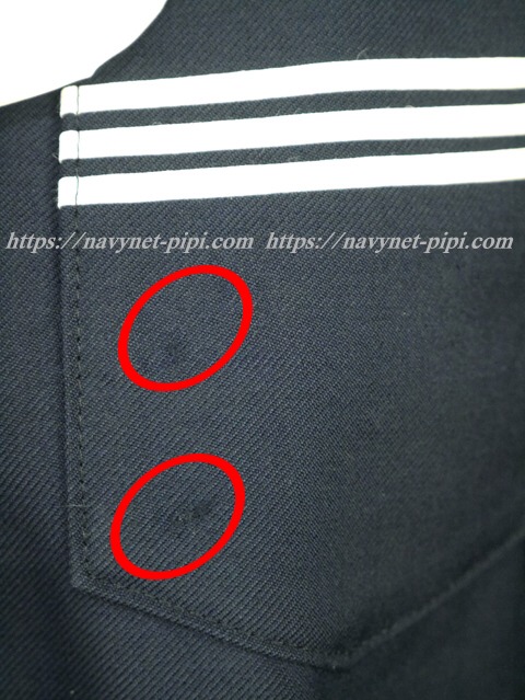 | 品質と状態 3年間の使用済み制服なので自然な使用感の傷みは若干あります。丁寧に大切に着ていた様子でなのですがお写真のように右袖の脇横と胸ポケットに名札取り付け跡で生地に若干の傷みがある状態です☆ |