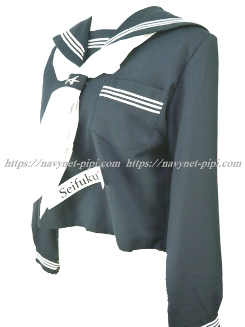 上着は濃紺でセーラー襟・胸当て・両袖口に白線3本入り☆