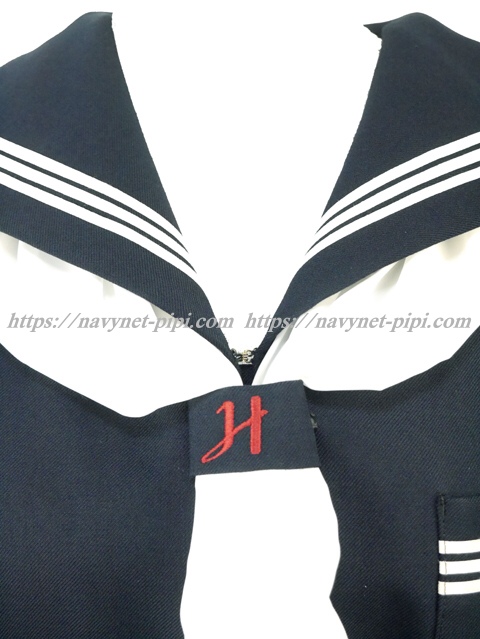 | 詳細/特徴 冬服(上着) (指定スカーフ付) ☆人気制服☆ 超大サイズ 【スカーフは新品の三角スカーフでハネクトーン製です】 濃紺でセーラー襟と胸ポケットと両袖口に白線3本☆ スカーフ留めに赤で校章刺繍入り♪ ネーム刺繍入り・左脇下ファスナー♪ |