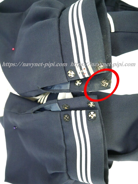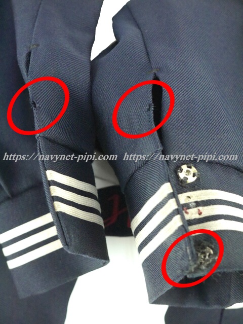 | 品質と状態 3年間の使用済み制服なので自然な使用感の傷みは若干あります♪丁寧に大切に着ていた様子なのですが両袖口上と左袖口に使用感の擦れ傷みがある状態なのと左袖口の白線に黒ずみ感とスナップの取り替え跡があります☆ |