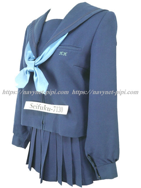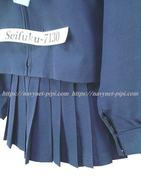 | 詳細/特徴 冬服3点セット (上着・スカート・専用シルク風リボン) ☆現行制服☆ マイクロミニ 生地の色は青紺って感じの色です♪ セーラー襟のラインは紺色の1本太ラインです☆ 前開きファスナー・胸当て付き☆ 胸ポケットに北高校の校章の刺繍入り☆ 青紺の28本車ヒダプリーツスカート☆ 左ファスナー&ポケット☆ ウエスト調整はアジャスタータイプです♪ |