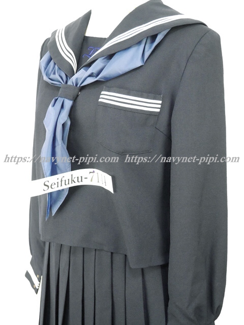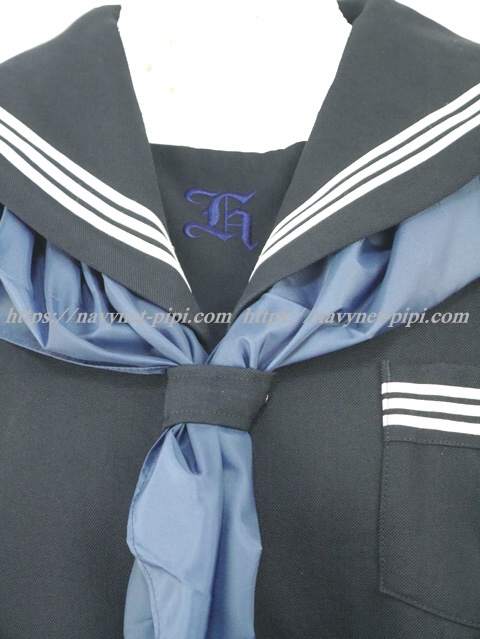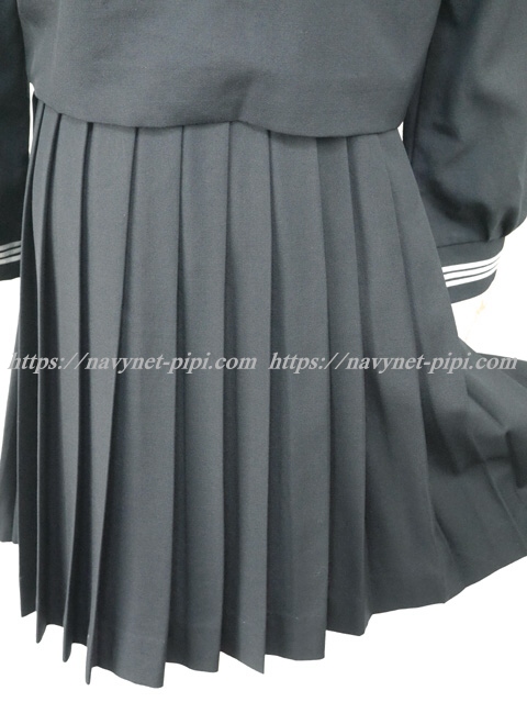 | 詳細/特徴 冬服3点セット (上着・スカート・指定スカーフ) ☆現行制服☆ 【スカーフは新品の紺色三角スカーフでハネクトーン製です】 濃紺のセーラー服セットです♪ セーラー襟と胸ポケットと両袖口に白線3本入り☆ 人気の胸当て付きで胸当てに紺色で校章刺繍入り 左脇下ファスナー♪ 濃紺の28本車ヒダ使用のプリーツスカート☆ 左ファスナー&ポケット☆ ウエスト調整はアジャスタータイプです♪ |