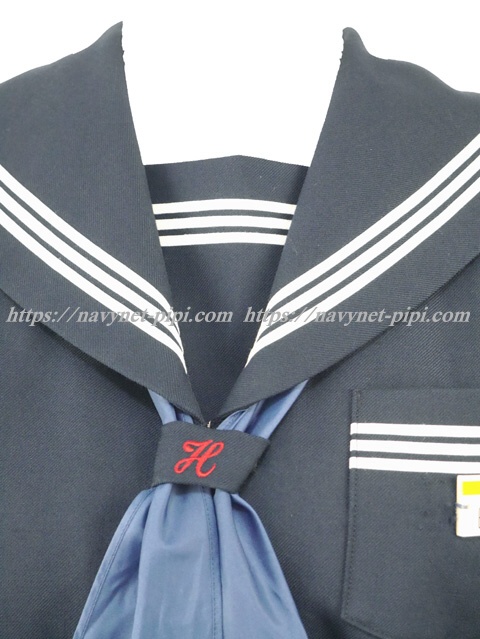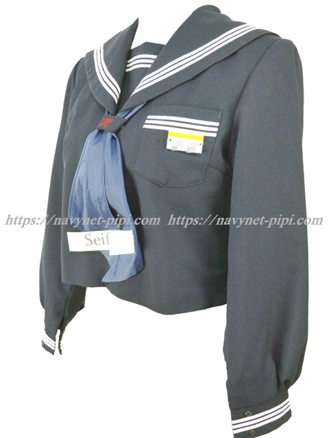 | 詳細/特徴 冬服(上着) スカーフ・プラ名札付き 【スカーフはお古のバータイ付き】 人気の濃紺タイプのセーラー服♪ セーラー襟と両袖口と胸ポケットと胸当てに白線3本入り☆ 左脇下ファスナー☆ スカーフ留めに赤で校章刺繍入り♪ ♪人気の胸当て付きタイプ♪ |