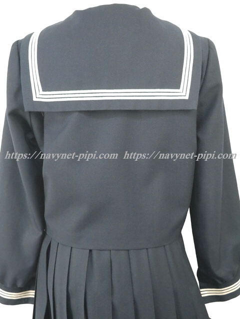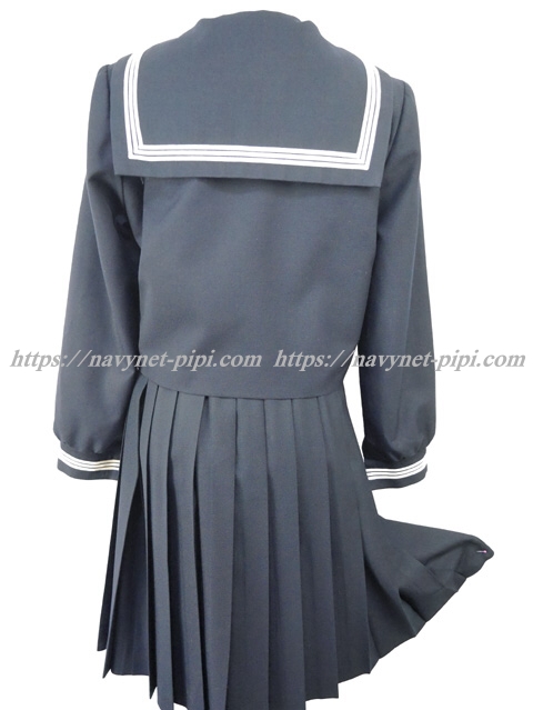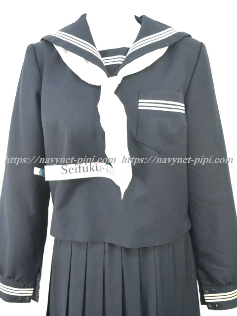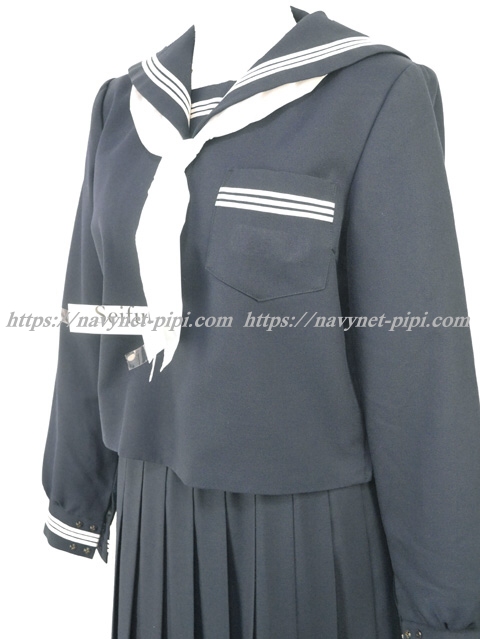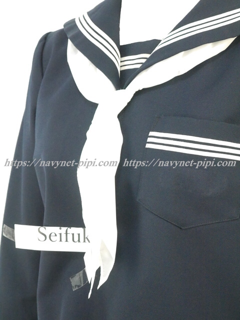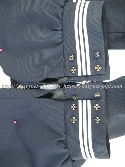 上着は濃紺でセーラー襟と胸ポケットと両袖口に白線3本入り☆