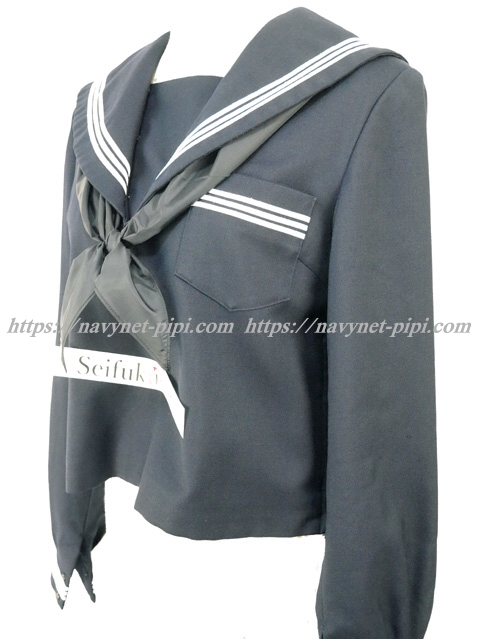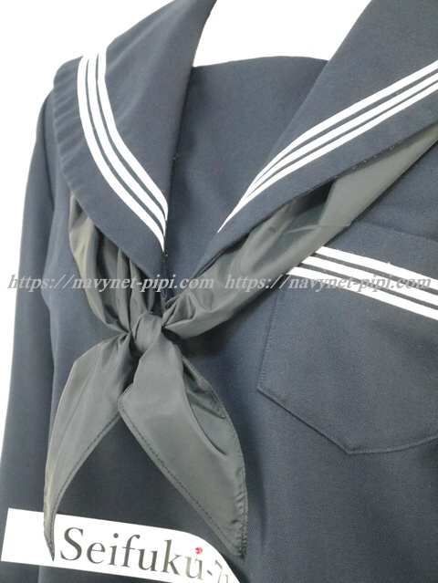 | 詳細/特徴 冬セーラー服 (上着・スカーフ付) 新品スカーフ付き 【スカーフは新品の三角タイプでハネクトーン製です】 濃紺のセーラー服♪ セーラー襟と胸ポケット、両袖口に白線3本入り☆ 左脇下ファスナー |