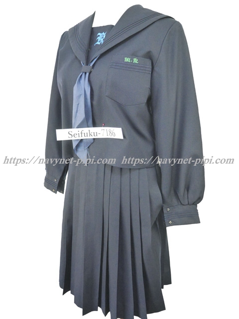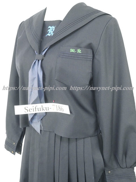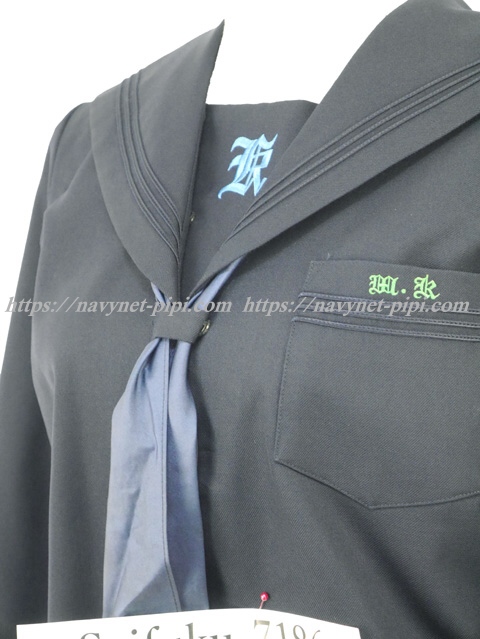 | 詳細/特徴 冬服3点セット (上着・スカート・指定スカーフ) ☆濃紺セーラー☆ 【スカーフはお古で紺色の帯タイプで素材はナイロンのアミックです】 濃紺のセーラー服セット♪ 紺色3本ラインのセーラー服・左脇下ファスナー☆ 胸当てに校章刺繍・胸ポケットにも校章刺繍入り☆ スカーフ留め付き☆ スカートは28本箱ヒダプリーツスカート♪ 左ファスナー&ポケット☆ ウエスト調整はアジャスタータイプ☆ ☆上着・スカートの内側に校章マーク入り☆ |