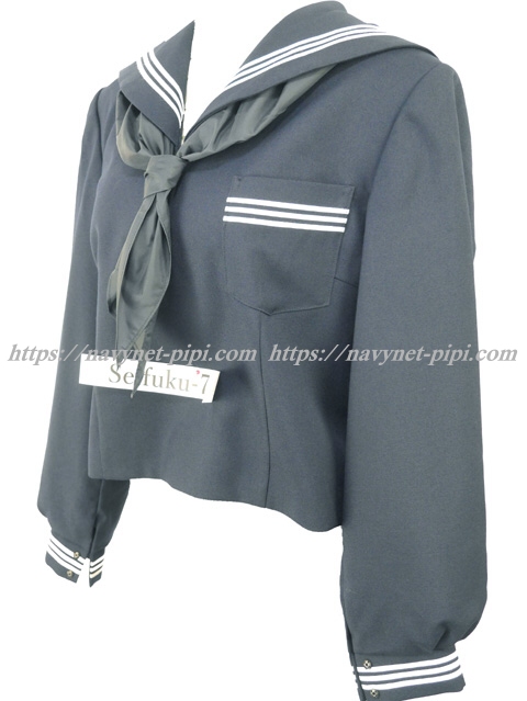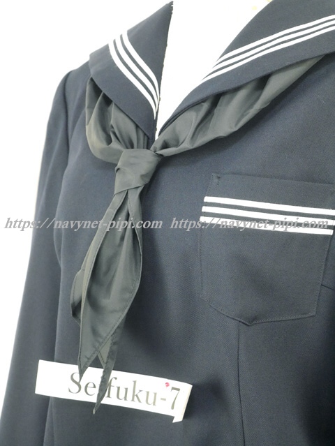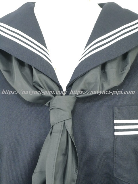 | 詳細/特徴 冬セーラー服 (上着・スカーフ付) 新品スカーフ付き 【スカーフは新品の三角タイプでハネクトーン製です】 濃紺のセーラー服♪ セーラー襟と胸ポケット、両袖口に白線3本入り☆ 左脇下ファスナー |