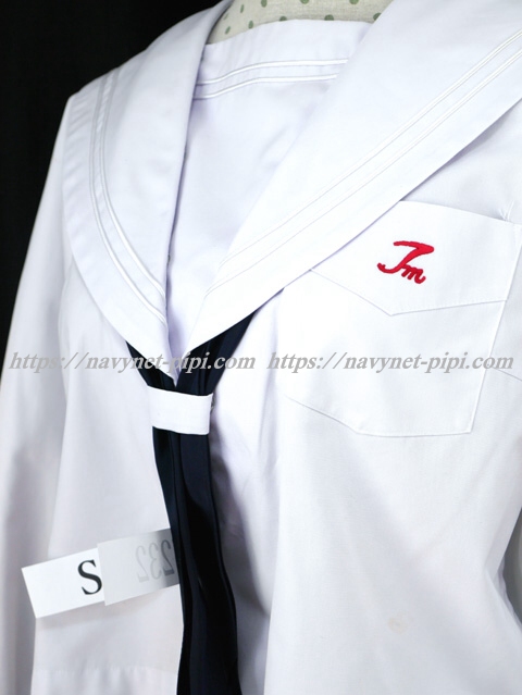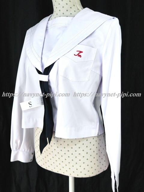 | 詳細/特徴 合服(上着・指定スカーフ) ☆旧制服☆ 【スカーフはお古の帯タイスカーフ、素材はナイロン100%のアミックです】 長袖の合服セーラーです♪ 上着はセーラー襟と胸当てに白線3本入り♪ 左脇下ファスナー・スカーフ留め付き☆ 大きな胸当てが特徴的☆ 胸ポケットに校章刺繍入り♪ |