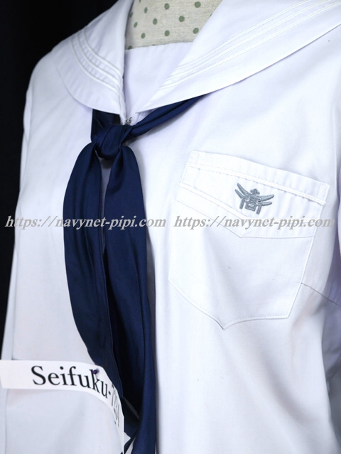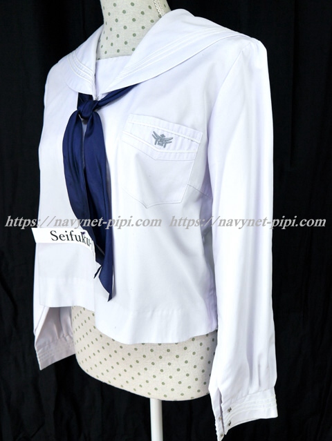 | 詳細/特徴 合服(上着・指定スカーフ) 大きいサイズ 【スカーフはお古の三角スカーフです】 夏服セーラーセット♪ セーラー襟と両袖口、胸ポケットに白線3本入り☆ 胸ポケットに校章刺繍・左脇下ファスナー☆ 小さな胸当てが可愛いです。 |