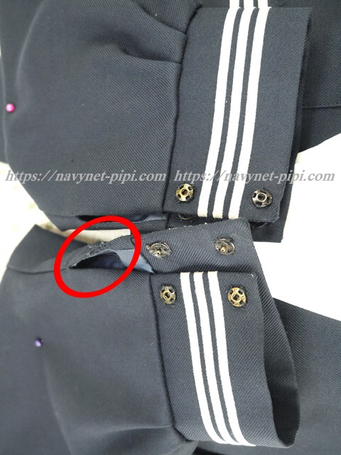 3年間の使用済み制服なので自然な使用感の傷みは若干あります♪丁寧に大切に着ていた様子なのですが右袖口に若干お写真のような傷みがある状況です☆
