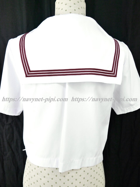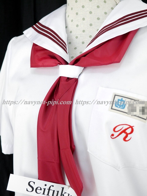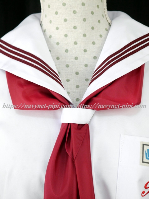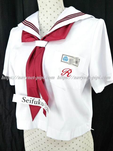 | 詳細/特徴 夏服(上着・新品スカーフ・ネーム名札付き) ☆人気制服☆ スカーフ付き セーラー襟にエンジ色の3本ラインが印象的で可愛いです☆ 上着は左脇下ファスナー・スカーフ留め付き☆ 胸ポケットに校章刺繍入り♪ |
