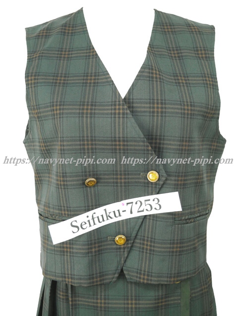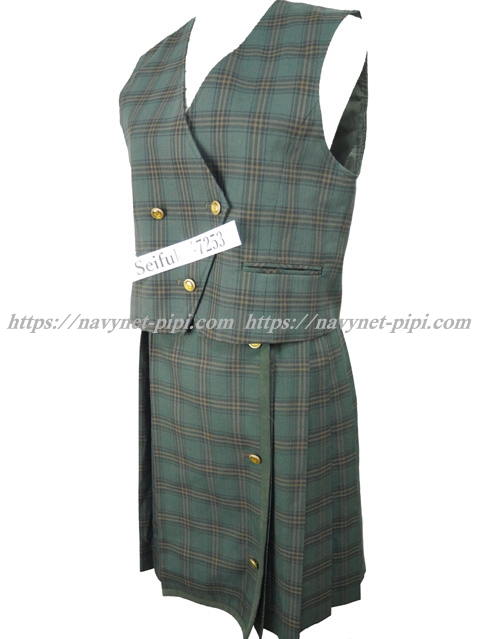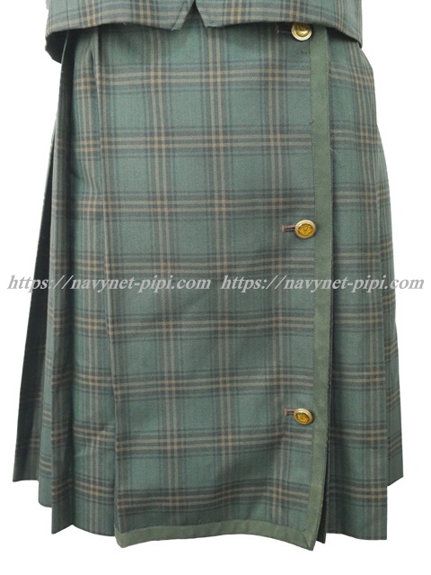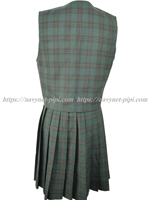 スカートもグリーン系のチェック柄で後ろが16本の車ヒダプリーツ仕様です。
