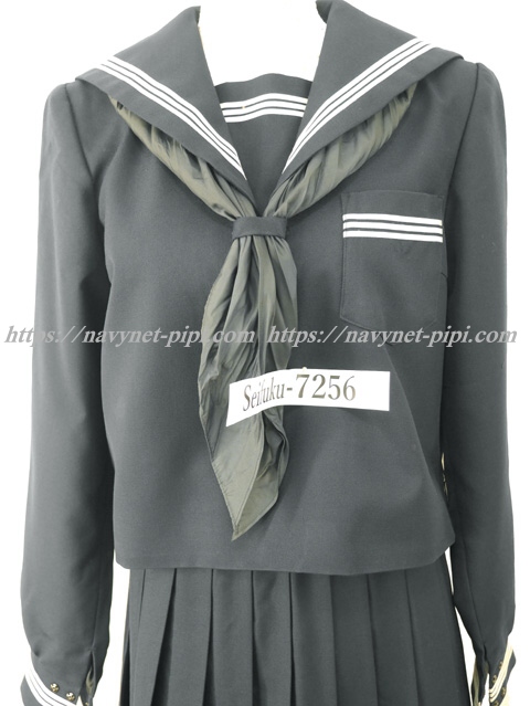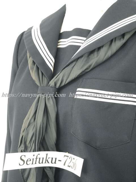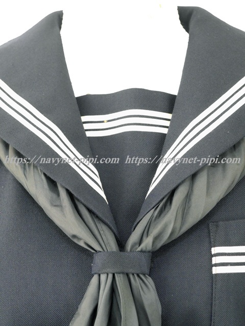 上着は濃紺でセーラー襟、胸当、胸ポケット、両袖口に白線3本入り☆