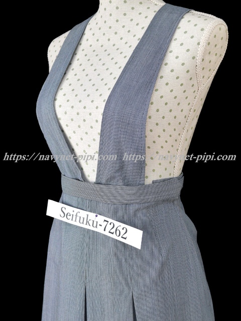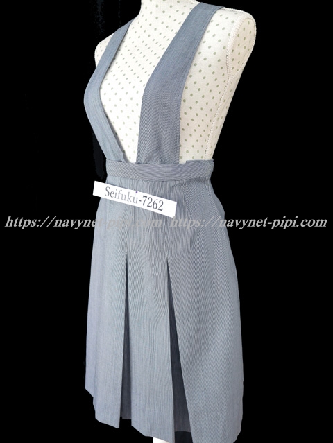 | 詳細/特徴 夏服(ジャンスカ) 腰スカートタイプ 水色と白の縦ストライプ スカート部分は6本BOXヒダプリーツ♪ 左ファスナー・ウエスト調整はアジャスター♪ |
