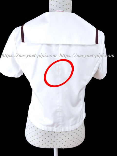 3年間の使用済み制服なので自然な使用感の傷みは若干あります。お写真のように前裾と背中下、右脇下に黄ばみ?シミ汚れがあります☆