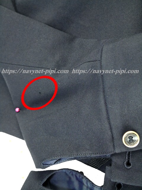 | 品質と状態 3年間の使用済み制服なので自然な使用感の傷みは若干あります♪丁寧に着ていた様子なのですがお写真のように両袖口にちょっぴ擦れ傷みと左袖口上に1ミリ丸の生地傷みがある感じです☆ |