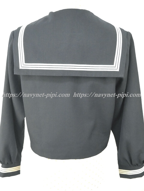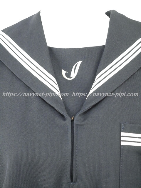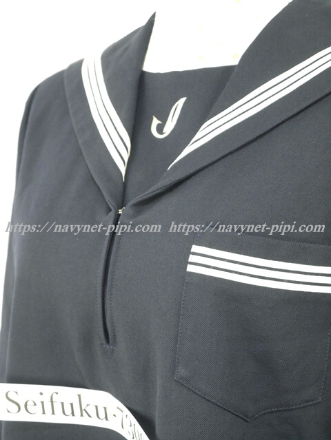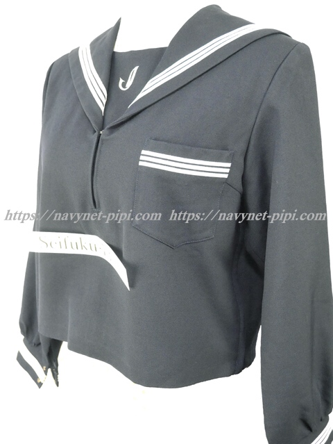 セーラー襟と胸当てと胸ポケットと両袖口に白線3本入り☆