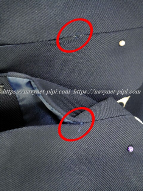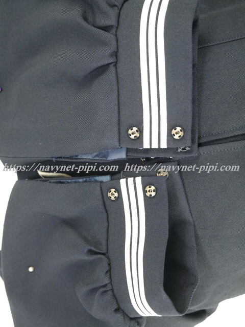 3年間の使用済み制服なので自然な使用感の傷みはあります。全体的に綺麗な状態なのですがお写真のように両袖口の上に少し擦れ傷みがある状態です。