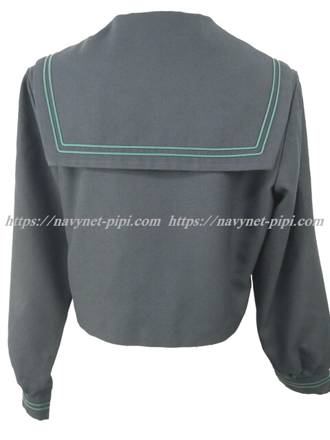 セーラー襟と胸ポケットと胸当てと袖口にグリーンの2本ライン☆