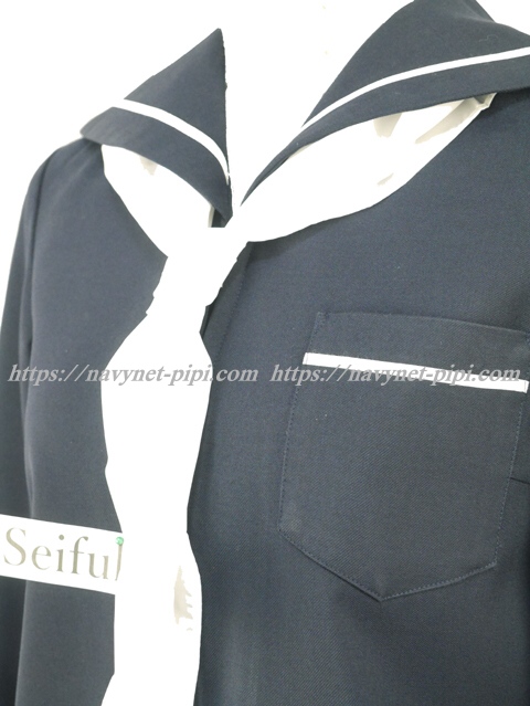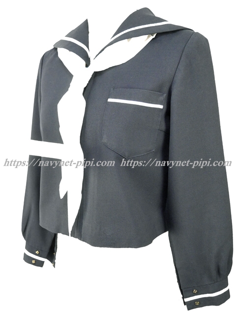 上着は濃紺でセーラー襟と胸ポケットと両袖口に白線1本♪